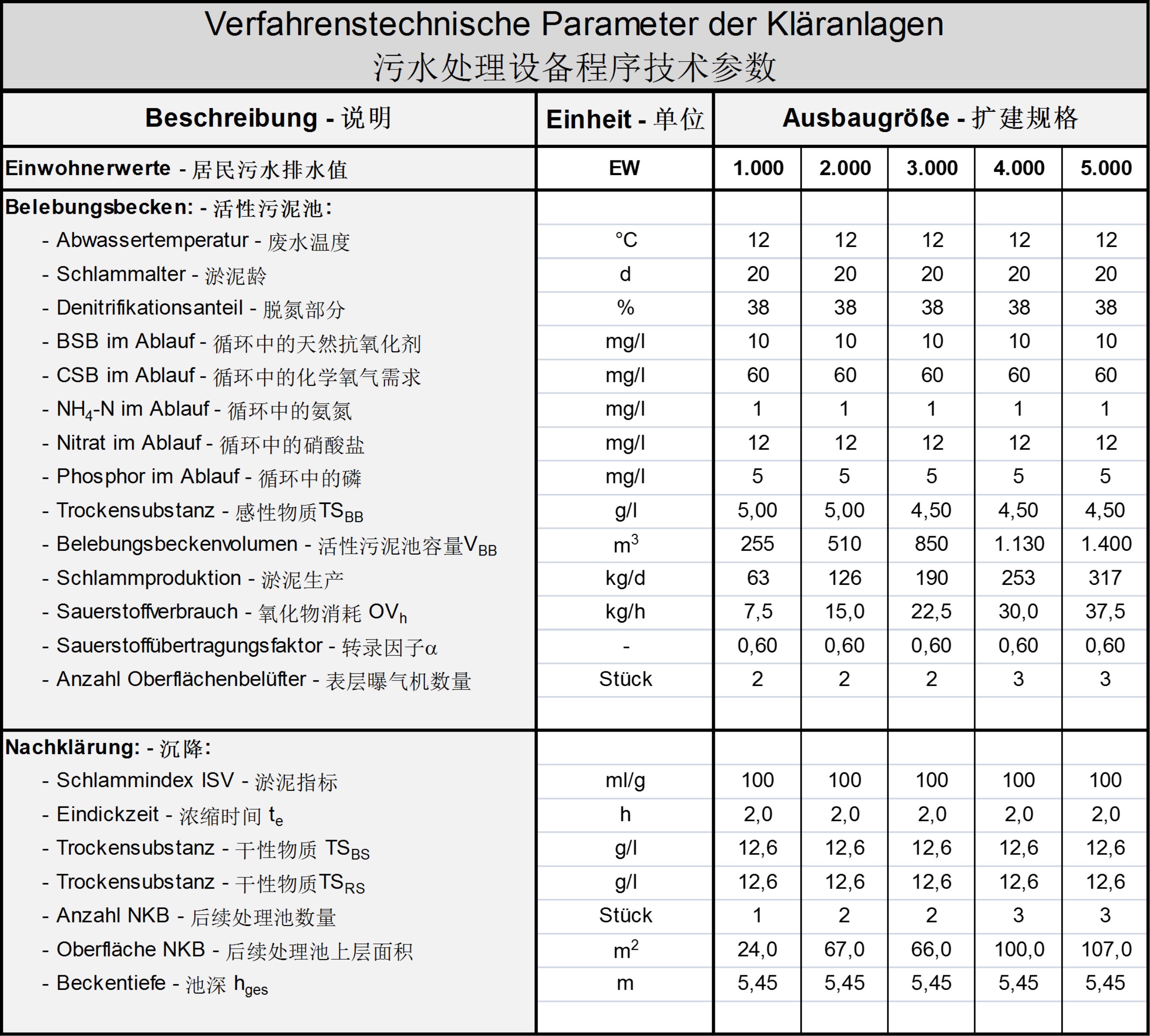 Zur Sicherstellung der Luftversorgung sind 1-3 Oberflächenbelüfter in den Belebungsbecken installiert. | 为了保障空气源必须在活性处理池建造1到3个表层曝气机。 |